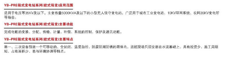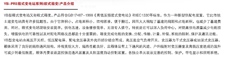 YB-PRE箱式變電站系列(歐式箱變)