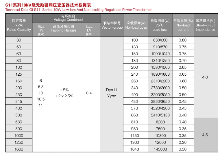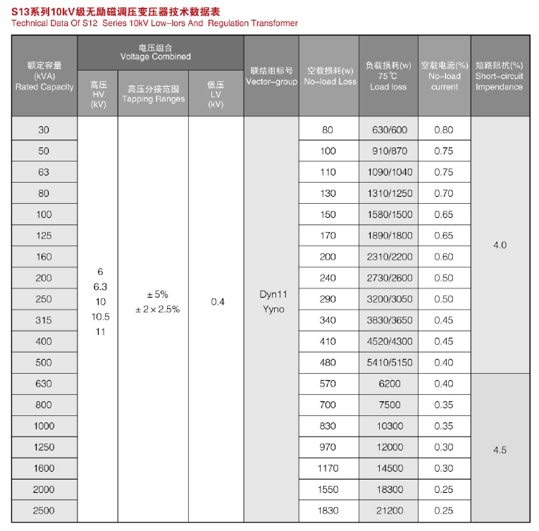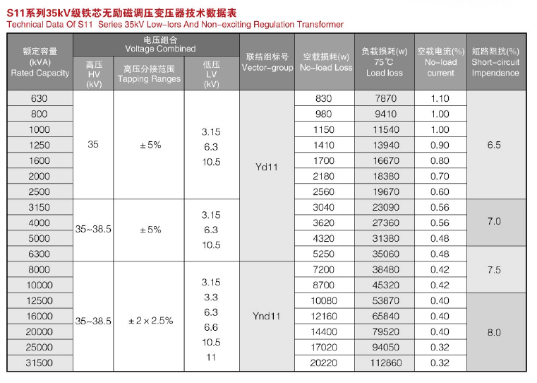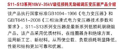 S11~S13-10KV~35KV級低損耗無(wú)勵磁調壓變壓器
